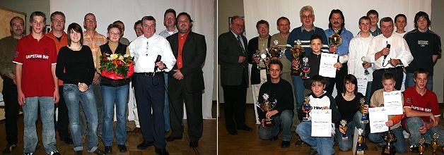 Kurz vor dem Höhepunkt des Abends, der Sportlerehrung, sorgte ein Stromausfall kurzzeitig noch für etwas vorweihnachtliche romantische Kerzenlicht-Stimmung. Nach der unfreiwilligen Pause fanden die zahlreichen Pokale ihre Gewinner, zunächst die Fahrerinnen und Fahrer im Jugend-Kart-Slalom. So siegte in der Klasse K2 Lukas Friedrich vor Maurice Djurdjevic und Mario Dobler. Vereinsmeister in der K3 ist Philipp Walter, in der K4 siegte Yannick Merk vor Jürgen Schmitt und Nina Offenbecher, die K5 gewann Sabine Christian vor Robin Lehn und Philipp Gebhard.