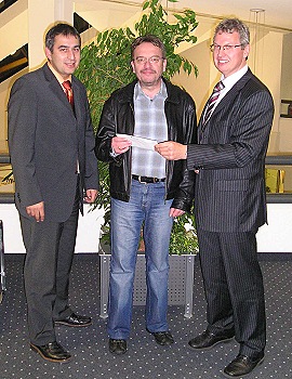 Jubiläumsspende für den CC Eulenspiegel (Foto: privat)(bro) (hb) Kurz vor Beendigung des Jubiläumsjahres "50 Jahre CC Eulenspiegel" und pünktlich zu Beginn der neuen Kampagne freute sich Präsident Roman Krawczyk, eine Jubiläumsspende der Sparkasse Neckartal-Odenwald in Empfang nehmen zu können. Krawcyk dankte den Überbringern Regionaldirektor Karlheinz Emig und Marc Moll, Leiter Immobilien-Center Eberbach, für die tatkräftige und spontane Unterstützung des CC Eulenspiegel.