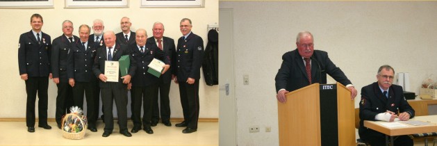 Für ihre langjährige Treue zur Feuerwehr Schönbrunn und ihre unermüdlichen Einsätze zeichnete Kreisbrandmeister Peter Michels und Kurt Spiegel als Vize-Vorsitzender des Kreisfeuerwehrverbandes verdiente Jubilare im Beisein fast aller Feuerwehrkameraden aus. Seit 25 Jahren leistet Uwe Ludwig bei der Abteilungswehr Haag treue Dienste und wurde mit dem silbernen Feuerwehr- Ehrenzeichen des Landes ausgezeichnet. Gerhard Göhrig ist sogar bereits seit 40 Jahren bei der Feuerwehr Schönbrunn im Dienst und erhielt selbiges Ehrenzeichen in Gold überreicht. Ehrenurkunden mit Nadeln erhielten Willi Wagner aus Schwanheim für 60 Jahre Zugehörigkeit, Theo Wolf aus Schönbrunn für 50 Jahre und Horst Zimmermann aus Schwanheim für 40 Jahre aus den Händen der Feuerwehroberen überreicht, die sichtlich stolz auf ihre langjährigen Feuerwehrkameraden waren.