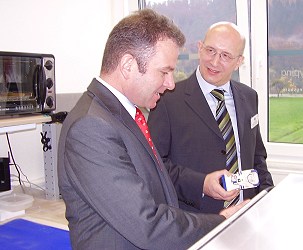 Tag der offenen Tür in Eberbacher Konstruktions- und Zeichnungsbüro Bürgermeister Bernhard Martin (l.) mit Firmeninhaber Bernhard Vanosmael. (Foto:A.Claussen)(jc) Seit einiger Zeit residiert im ehemaligen Emig- Verwaltungsgebäude ein weiteres Unternehmen. Das Konstruktions- und Zeichnungsbüro Bernhard Vanosmael 3D Rapid Prototyping hat sich auf die Herstellung von 3D-Prototypen spezialisiert. Inhaber Bernhard Vanosmael lud am vergangenen Wochenende zum Tag der offenen Tür, bei dem sich auch Bürgermeister Bernhard Martin in der Pleutersbacher Straße einfand, um sich zu informieren.