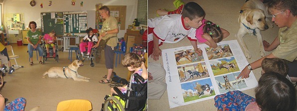 Den Schülern wurde bei diesem mit großer Vorfreude erwarteten Besuch auf lebhafte und liebevolle Weise nahe gebracht, Hunden angemessen zu begegnen. Vorbereitete Lerninhalte waren "Verständigung zwischen Mensch und Hund", "Berufe von Hunden" sowie "richtige Pflege von Hunden".