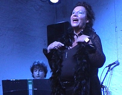 Stimmgewaltige Diva beim Kulturlabor (Foto:Richter)(hr) Mit einer breiten Palette kabarettistischer Chansons näherte sich die Heidelberger Entertainerin Barbara Kosariszuk gestern Abend in der Galerie Artgerecht thematisch der Spezies "Mann". In Eberbach ist die stimmgewaltige Diva seit den neunziger Jahren bekannt, zunächst als Mitglied der Mannheimer Kabarett-Truppe "Dusche" und später dann mit musikalisch-kabarettistischen Soloauftritten.