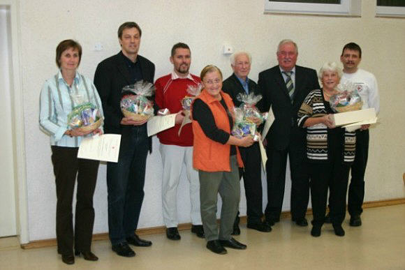 Elf Blutspender in Schönbrunn geehrt Bürgermeister Roland Schilling ehrte im Namen des DRK- Blutspendedienstes elf Blutspender. (Foto:Böhm)(ub) Zu Beginn der öffentlichen Gemeinderatssitzung ehrte Schönbrunns Bürgermeister Roland Schilling auch in diesem Jahr wieder zahlreiche Blutspender. Für den Ehrungszeitraum 1.10.2005 bis 30.09.2006 hatte er alle Hände voll zu tun und elf Verleihungsurkunden mit Blutspender- Ehrennadeln im Auftrag des DRK- Blutspendedienstes, des DRK-Ortsvereins Schönbrunn und der Bereitschaftsgruppe zu überreichen. Insgesamt wurden neun Spender mit der Blutspender-Ehrennadel in Gold ausgezeichnet, die für 10maliges Blutspenden überreicht wird. Rita Dinkeldein, Liane Eitelbuß, Nikolaus Heinrichs, Kuno Lange, Ullrich Lenz, Eugen Münz, Jörg Mützel, Theo Schmitt und Uwe Seifert erhielten die Urkunden aus den Händen des Gemeindeoberhauptes. Mit einer ganz besonderen Auszeichnung für 50maliges Blutspenden wurden Heiner Jakob und Edith Wäsch bedacht. Für diese oftmals Leben rettende Spende wurden beide mit der Ehrennadel in Gold mit goldenem Lorbeerkranz und eingravierter Spendenzahl 50 ausgezeichnet. Schilling dankte allen Spendern im Namen des DRK-Blutspendedienstes, des Gemeinderates und der Bürgerschaft für diese uneigennützige Blutspende. Der Bedarf an Blutpräparaten, so Schilling, sei nach wie vor sehr hoch und durch die vielen Engpässe an Kliniken und Krankenhäusern müsse eine gewisse Vorhaltung und Sicherheitsreserve für Notfälle vorhanden sein. Der DRK- Blutspendedienst sei froh über jede Blutspende, die für gesunde Menschen risikolos sei, man müsse nur den Mut dazu haben.