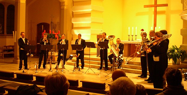 Festliche Adventsmusik in der Michaelskirche (Foto:Tonn)(hr) Musikalische Glanzpunkte im Eberbacher Programm am ersten Adventswochenende setzte das Süddeutsche Blechbläserensemble in der Evangelischen Michaelskirche.