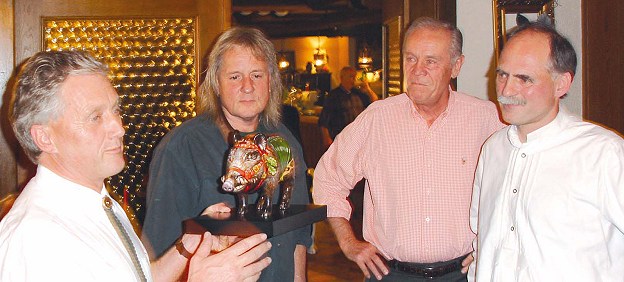 Höhepunkt war jedoch die Versteigerung eines kleinen Ebers, der vom bekannten Cartoonisten Haralds Klavinius aus Würzburg künstlerisch gestaltet und vom Gastgeber Günter Daiss zur Verfügung gestellt wurde. Nach heftigen Gebotskämpfen schlug der Auktionshammer zum dritten Mal zu, und für 1.500 Euro war Stefan Layher aus Besigheim der neue stolze Besitzer des Schmuckstückes. Ein durchaus erstaunlicher Erlös angesichts der Tatsache, dass der Höchstpreis bei der großen Eber-Auktion im Oktober bei 510 Euro für einen "Xavier-Naidoo-Eber" lag (wir berichteten).