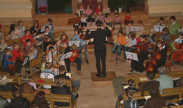 Musik- und Singschulensembles begeisterten die Konzertbesucher (Foto:Wörner)(tw) Eine ganze Reihe musikalischer Gruppierungen der Musikschule sowie der Singschule Eberbach, konnte Kulturamtsleiter Tobias Soldner beim offenen Advents- und Weihnachtsliedersingen am Sonntagabend in der Evangelischen Michaelskirche in Eberbach ankündigen. Das große Musikschulorchester und die Singschule Eberbach unter der Leitung von Bezirkskantor Achim Plagge, die Spatzenchöre der Erst- und Zweitklässler geleitet von Kriemhild Pfeiffer. Außerdem Ralph Schweizer mit seinem Klarinettenensemble, das Vokalensemble des Jugendchores (Frauenchor), den Nachtigallenchor (3+4 Klasse), den Chor der 5+6. Klasse (Unterstufenchor) und die "Voices of Heaven". Last but not least die Bigband der Musikschule unter der Leitung von Ralph Schweizer. Mit einem Gesamtkunstwerk aus der spannenden Mischung von traditionellen, folkloristischen und modernen Liedern und Musikstücken begeisterten die Sänger und Musiker die Konzertbesucher in der bis auf den letzten Platz besetzen Michaelskirche. Doch auch die Zuhörer waren einige Male gefordert und durften unter der Leitung von Achim Plagge Advents- und Weihnachtslieder singen.