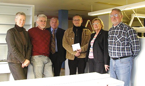 Willkommene Spende für Instrumentenanschaffung V.l.: Marion und Dr. Berthold Ader, Manfred Jurytko, Tobias Soldner, Brigitte Jurytko und Dieter Bräuninger, Technischer Leiter des Dentallabors. (Foto:Claussen)