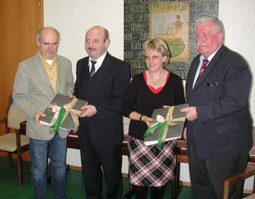 Neue Grundbücher für Schönbrunn und Pleutersbach Ein "Weihnachtsgeschenk" fürs Grundbuchamt; Joachim Geiss übergibt Bürgermeister Roland Schilling, Karl Braus und Anneliese Gliese die Grundbuchberichtigungsunterlagen. (Bild GVS)(ub) (GVS) Vorweihnachtliche Bescherung für den Bürgermeister von Schönbrunn, die Leiter der Grundbuchämter und der Bauverwaltungen von Eberbach und Schönbrunn im Schönbrunner Rathaus. Ein ganz besonderes Geschenk durften Herr Bürgermeister Schilling und die Mitarbeiter der Eberbacher und Schönbrunner Verwaltung aus den Händen der Vertreter des Flurneuordnungsamtes Sinsheim entgegennehmen. Bürgermeister Roland Schilling begrüßte dazu im Schönbrunner Rathaus die Sinsheimer Flurneuordner Joachim Geiss, Bernd Beatsch und Sigrid Eicker, als Vertreter der Stadt Eberbach Ortsvorsteher Harald Rupp, die Leiterin des dortigen Grundbuchamtes Anneliese Gliese und Albrecht Streng als Leiter der Bauverwaltung sowie Karl Braus und Karl Wilhelm von der Schönbrunner Verwaltung, die sich allesamt über das gelungene Werk freuen.