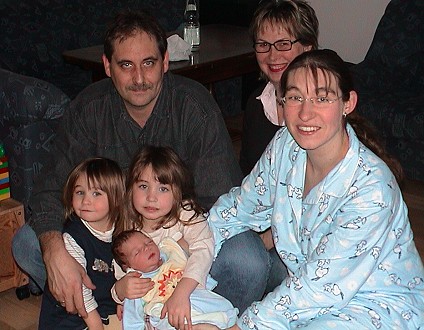 "Zuhause zu entbinden war angenehmer als im Krankenhaus", stellte die jetzt dreifache Mutter Sabine Umminger fest. Sie, ihr Ehemann Dieter Umminger und Marita Heun-Steigmeier meisterten die Geburt im Wohnhaus, in dem auch die beiden Kinder Lea, 4 Jahre, und Sarah, 2 Jahre, zuerst schliefen und dann gleich nach der Ankunft der Schwester das neue Familienmitglied bewundern durften.