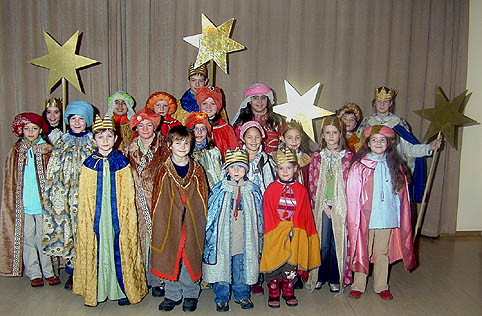 (tb) Mit dem Kreidezeichen "20*C+M+B*07" Christus Mansionem Benedicat (Christus segne dieses Haus) segneten am Dreikönigstag und am darauf folgenden Sonntag wieder die Sternsinger die Häuser von Waldbrunn. Traditionell wurden die Sternsinger im Rahmen des in der Pfarrkirche St. Maria zelebrierten Dreikönigsgottesdienstes in alle Waldbrunner Ortsteile entsandt, um so Geld für das jährlich wechselnde Beispielland zu sammeln. "Tianay ny Haritanan’Atra!", in Deutsch " Kinder sagen ja zur Schöpfung!" lautete in diesem das Motto, unter welchem rund 40 Mädchen und Jungen, darunter auch Kinder aus der evangelischen Kirchengemeinde, in traditionellen Gewändern, den Stern voraus tragend, mit ihren Begleitern in Waldbrunn von Haus zu Haus gingen, um den traditionellen Dreikönigssegen Segen "Christus Mansionem Benedicat" (Christus segne dieses Haus) zu überbringen und mit geweihter Kreide "20*C+M+B*07" über die Eingangstüren der besuchten Häuser zu schreiben. Der Erlös der Sammlung geht an das diesjährige Beispielland Madagaskar, in dessen Landessprache auch das Leitwort geschrieben ist. Träger der bundesweiten Sternsingeraktion ist das Kindermissionswerk "Die Sternsinger" und der Bund der Deutschen Katholischen Jugend (BDKJ). Jährlich werden durch diese Aktion sehr viele Projekte für Not leidende Kinder in Afrika, Asien, Lateinamerika, Osteuropa und Ozeanien durch die gesammelten Gelder unterstützt. Zudem war es ein Wunsch der Waldbrunner Sternsinger, dass man auch die Arbeit der aus Waldbrunn stammenden Schwester Colette unterstützt, die in einem Kinderdorf in Indonesien arbeitet.