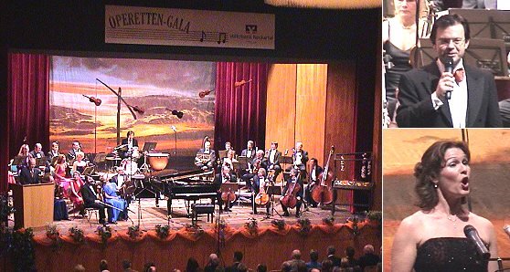 Nach der Eröffnungsrede durch den Vorstandsvorsitzenden Herbert Hinterschitt führte mit viel Witz Kontrabassist und Moderator Frank Ringleb durch ein beschwingtes Programm und man vernahm ein reiches Konzert, ein nicht so leicht dirigier- und spielbares, bedenkt man die vielen Tempiwechsel, Wiederholungs- und Sprungzeichen. Die Werke von Johann Strauß (Sohn) über Emmerich Kálmán bis hin zu Gerhard Winkler wurden dazu gut getragen durch die professionellen Interpretationen der Solisten. Wenn es überhaupt noch zu steigern war, so lagen die Highlights im vollen strahlenden Orchesterton, mit tollem Violoncello von Michael Steinmann, im Gesang von Kerstin Bruns, auch mit ihrer wunderschönen Interpretation des Liedes der Mariza "Höre ich Zigeunergeigen" wo sie mit fulminanter Stimme sang: "Wo wohnt die Liebe? Wer kann´s mir zeigen? Wen kann ich fragen?" und einem Klassetenor Bernhard Gärtner.