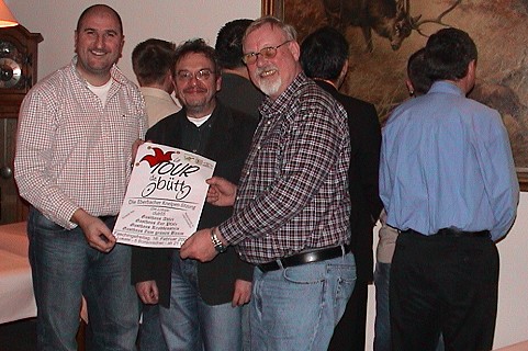 Büttenredner auf Kneipen-Tour Die Chefs der "Tour de Bütt": v.l. Bernhard Walter, Roman Krawczyk und Dieter Müller. (Foto:C.Richter)(cr) "Am Fastnachtswochenende ist in Eberbach zu wenig los" - ein Problem, mit dem sich die Eberbacher Karnevalisten nicht abfinden wollen. Auf Anregung von Bernhard Walter (KG Urmel) findet am Faschingsfreitag, 16. Februar, die erste "Tour de Bütt" in Kooperation der KG Kuckuck, der KG Urmel und des Club Eulenspiegel in Eberbach statt. Diese "Kneipen-Sitzung" steigt gleichzeitig im Club 55, Gasthaus Adler, Gasthaus Zur Pfalz, Wirtshaus Zum Krabbenstein und Gasthaus Zum grünen Baum. Fünf Büttenredner der drei Vereine starten um 21 Uhr mit ihrem närrischen Programm, jeder in einer anderen Gaststätte. Unterstützt werden die Fastnachter von jeweils mindestens drei weiteren Personen aus den eigenen Reihen, quasi die Faschings-Security. Die Bevölkerung ist an diesem Abend bei freiem Eintritt dazu eingeladen, in den jeweiligen Lokalen zusammen mit den Rednern und deren Gefolge Fastnacht zu feiern. Das Lokal muss von den Gästen nicht gewechselt werden, wohl aber von den Rednern. Die närrischen Teams werden reihum in allen Lokalen auftreten. Laut Plan wird gegen 23.30 Uhr jeder Gast jeden Redner gesehen und gehört haben.
