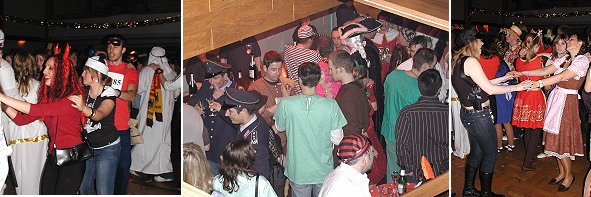 Alle Jahre wieder volles Haus beim Feuerwehrball (Fotos:Claussen)(jc) Das Phänomen Feuerwehrball läuft weiter auf Hochtouren. So herrschte erwartungsgemäß auch gestern wieder Hochbetrieb und dichtes Gedränge auf der Tanzfläche und an den diversen Bars in Großem Saal und Foyer der Stadthalle. Die überwiegend aus jugendlichen und jung Gebliebenen bestehende Besucherschar war trotz merkwürdig "statisch" wirkender Kapelle „No Limits“ mit altbewährten Schwofhits schnell in ausgelassene Stimmung zu versetzen. Vielfach in originelle Kostüme geschlüpft, schlängelten sich die in Feierlaune Versetzten öfters in langen Polonaisen durch die Halle. Vor der Umfunktionierung zur Stadtbibliothek war wohl zum letzten Mal die "Aufnahmestelle für feste Nahrung" und ein "Ruhepol" der Veranstaltung im kleinen Saal untergebracht.