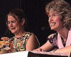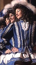 Für den tempogeladenen und perfekt choreografierten Auftakt zum zweiten Teil der Sitzung sorgte die Prinzengarde (Bild oben rechts), und mit einem umwerfenden "Jahrgangstreffen", bei dem sie vom launigen Ober Reinhard Wurm bewirtet wurden, liefen die "Krawallschachteln" Petra Hildenbrand und Silke Auer zu komödiantischer Hochform auf (Bild links, v.l.). Walter Winter, seit 22 Jahren als Büttenredner dabei, nahm mit der Schilderung eines aussichtslosen Kampfes gegen die Pfunde seinen Abschied. Als Elferrat will er der KGK aber treu bleiben. Mit Musik unt Tanz präsentierten dann die "Elwetritsche" die unterschiedlichsten Sportarten: von Radfahren und Walken über Boxen, Rennfahrerei und Kraftsport bis zum Fußball. Benjamin Müller erzählte von seinen Erlebnissen als "Facharzt für karnevalistische Schmerzen". Als solcher hatte er schon so manchen Kuckucks-Aktiven in der Kur. Einen stimmungsvollen Schautanz zeigten die "Nesthocker" mit ihrer musikalischen Begegnung von Wolfgang Amadeus Mozart und der österreichischen Poplegende Falco.