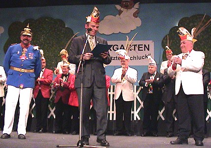 Gestern Abend konnte Bürgermeister Bernhard Martin im Rahmen der Sitzungspremiere der KG Kuckuck in der Stadthalle gleich zwei Karnevalisten mit dem Orden auszeichnen: Wolfgang Röderer und Ernst Wagner.