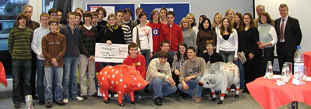 (jc) Zum 24. Mal veranstaltete die Sparkassen-Finanzgruppe das Planspiel Börse. Über 200 Teams mit insgesamt 800 Schülerinnen und Schülern waren im Geschäftsgebiet der Sparkasse Neckartal-Odenwald beteiligt. Spielbeginn war der 1. Oktober, Ende am 12. Dezember 2006. Insgesamt standen 150 Wertpapiere an den internationalen Börsenplätzen zur Auswahl. Der Bundessieger, eine Spielgruppe aus Halberstadt, konnte unter diesen Bedingungen einen Gewinn von fast 13.000 erwirtschaften. Aber auch die Teams der Sparkasse Neckartal-Odenwald konnten stattliche Gewinne erzielen, so schaffte das Team „Pink Panther“ vom Hohenstaufen-Gymnasium Eberbach immerhin einen Gewinn von fast 4000 Euro. Auf den folgenden Plätzen landeten die HSG- Gruppen "Die Jägermeister" mit 3800 Euro Gewinn, vor den "Supertroopers" mit einem Zuwachs 2900 Euro. Regionalleiter Karlheinz Emig und Wertpapierberater Gerhard Daum konnten gestern im Rahmen einer kleinen Abschlussfeier ein Preisgeld von insgesamt 600 Euro an die Gruppen ausschütten.
