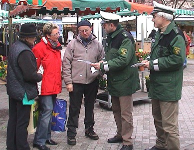 Nicht benebelt ans Steuer (Foto:C.Richter)(cr) "Wer fährt, der trinkt nicht und wer trinkt, der fährt nicht!" Mit diesem Aufruf waren gestern drei Polizeibeamte in Eberbach unterwegs, um auf Gefahren und Folgen mit Alkohol und Drogen am Steuer hinzuweisen. Detlev Bruhs und Paul Hotz von der Verkehrserziehung Sinsheim und Manfred Weyher vom Polizeirevier Eberbach suchten das Gespräch mit der Bevölkerung. "Feiern ohne Risiko - schon mit 0,3 Promille ist Ihr Führerschein in Gefahr!" steht auf den Flyers zu lesen, die die Beamten in der Innenstadt verteilten. Am gestrigen Schmutzigen Donnerstag galt ihr Augenmerk besonders den Närrinnen und Narren, die nach Alkoholgenuss auf einer Faschingsparty ihr Auto stehen lassen sollten. Während der letzten Faschingswochenenden wurden im Zuge von Kontrollen eine Person mit Drogen und fünf weitere mit Alkohol am Steuer ermittelt. Letztere werden sich auf eine längere Zeit ohne Autofahren einstellen müssen. Mit der gestrigenn Aktion erhofft sich die Polizei, die Verkehrsteilnehmer zu verantwortungsvollem Verhalten zu animieren, zumal auch an den kommenden Tagen mit Verkehrskontrollen zu rechnen sei.