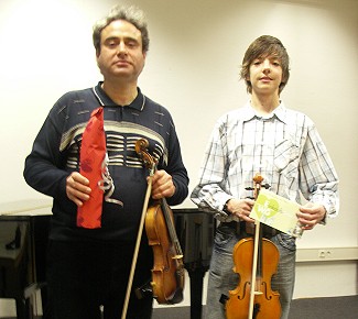 Nun geht es mit viel Arbeit gemeinsam mit seinem Lehrer Vladimir Rivkin und dessen Frau Martina Rivkin, die Fabian am Klavier begleitet, an die Vorbereitung zum Landeswettbewerb.