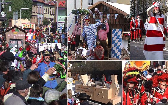 Eberbacher Gaudiwurm so groß wie noch nie (Fotos:Richter)(hr) 68 Zugnummern reihten sich heute beim großen Fastnachtsumzug in Eberbach aneinander. "Das sind so viele wie noch nie", freute sich Zugmarschall Wolfgang Röderer von der Karnevalgesellschaft Kuckuck (KGK). Fußgruppen, Musikkapellen und bunte Wagen sorgten in den Straßen für närrische Laune auf dem Höhepunkt der heute zu Ende gehenden Kampagne.