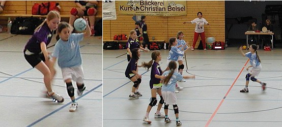 SGH-E-Jugend hatte TV Eschelbronn zu Gast (Fotos:Claussen)(jc) Am vergangenen Sonntag hatte die E-Jugend der SGH Waldbrunn-Eberbach den TV Eschelbronn zu Gast. Durch den Handball-Boom nach der Weltmeisterschaft hatten sich in den vergangenen Wochen wieder zahlreiche Neuzugänge in dieser Altersklasse bei der SGH zum Training eingefunden. Einige kamen jetzt in der Hohenstaufen Sporthalle zum ersten Einsatz. Die Trainerinnen Bianca Menges und Luzia Schmitt konnten eine weitere Steigerung der zu Rundenbeginn neu gebildeten Mannschaft beobachten. Gegen Eschelbronn reichte es immerhin für vier Tore bei 15 Gegentreffern. Noch fehlt es aufgrund mangelnder Erfahrung an Übersicht und Abschlussqualität um gegen eingespielte Teams noch besser zu bestehen. In der Abwehr wussten die Mädchen vor allem in der zweiten Hälfte aber schon ordentlich zu kämpfen. Die SGH war mit vier und der TV mit sieben Torschützinnen erfolgreich. Nach den Regeln dieser Altersklassen werden die erzielten Tore mit den Torschützen multipliziert, somit lautete das Endergebnis 16:105 für die Gäste. Die SGH belegt in der Tabelle eines Achterfeldes mit bisher einem Sieg auf der Habenseite den siebten Rang.