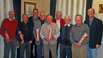 Abschließend bedankte sich Karin Conrath bei Vorstand, Notenwart Josef Mathias, den Vize-Chorleitern Wolfgang Huber und Friedrich Wäsch sowie den Sängern. Beim Besuch der Chorproben konnte im zurückliegenden Jahr erneut eine erfreuliche Steigerung verzeichnet werden, wie 2. Vorsitzender Andreas Held berichtete. Wie alljährlich durften auch in diesem Jahr wieder einige Sänger des MGV ein Präsent für regelmäßigen Probenbesuch entgegennehmen. Keine einzige Probe versäumte im Jahr 2006 Franz Szedlak, lediglich einmal fehlten Karl Bracht, Robert Löffler und Eckart Sprenger, nur je zweimal die Sänger Josef Mathias, Hans Reibel, Friedrich Wäsch, Günther Raab, Werner Weiß und Andreas Held.