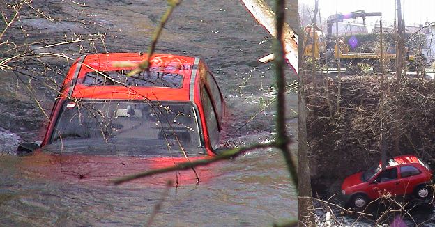 Gegen 9 Uhr sah ein Passant an der Steinernen Brücke den Corsa etwa 80 Meter unterhalb des HGE-Heims mitten in der Itter stehen. Die Ermittlungen der Polizei ergaben, dass das Auto direkt vor dem HGE-Heim über die Uferböschung in die Itter gestürzt war und wohl in der Nacht durch die Strömung etwas bachabwärts getrieben wurde. Ob Fremdbeteiligung dabei im Spiel war - etwa ein schlechter Scherz gelangweilter Zeitgenossen - muss die Polizei noch untersuchen. Zeugen werden gebeten, sich mit dem Polizeirevier in Eberbach, Tel. (06271) 92100, in Verbindung zu setzen.