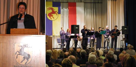 Für 1,62 Millionen Euro Bürgerhaus zum Rathaus umfunktioniert Bürgermeisterin Ute Stenger sowie das Folkloreensemble der Musikschule Hirschhorn (Fotos:Claussen)(jc) Zwar residiert die Hirschhorner Stadtverwaltung bereits seit November vergangenen Jahres in ihrem neuen Domizil, am vergangenen Samstag wurde das neue Hirschhorner Rathaus aber noch offiziell eingeweiht.