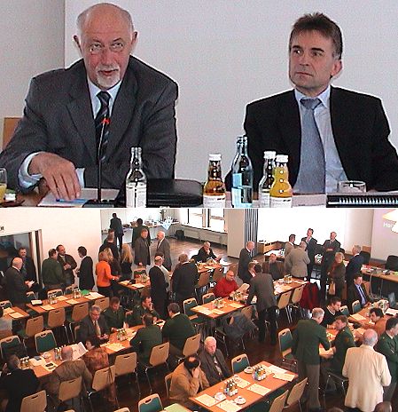 Verein für Kriminalprävention tagte in Eberbach Oben der 1. Vorsitzende Dr. Jürgen Schütz und Geschäftsführer Günther Bubenitschek (v.l.). (Fotos:C.Richter)(cr) Seine jährlich stattfindende Mitgliederversammlung führte heute der Verein Kommunale Kriminalprävention Rhein-Neckar e.V. in Eberbach durch. Laut Geschäftsführer Günther Bubenitschek versteht sich die Kommunale Kriminalprävention als das Herzstück der baden-württembergischen Sicherheitsphilosophie. Zahlreiche Vertreter aus Politik, Wissenschaft, Städten, Gemeinden, Schulen und der Polizei fanden sich im Ratssaal ein. Bubenitschek trug einen Sachstandsbericht über die Vereinsaktivitäten im Jahr 2006 vor. In Eberbach wurde beispielsweise das Streetball-Tunier "My Way - Fair Play" durchgeführt. Der Geschäftsführer stellte auch die geplanten Projekte im Rhein-Neckar-Kreis für das Jahr 2007 vor. Mit der finanziellen Entwicklung des Vereins, der zurzeit keine Mitgliedsbeiträge erhält, sondern durch Spenden und Einnahmen von Geldbußen finanziert wird, zeigte sich Schatzmeister Heinz Bönisch nicht ganz zufrieden. Fehlende Finanzmittel wirkten sich auf die Projektförderung aus. Bei der Neuwahl des 2. Vorsitzenden wurde Polizeidirektor Peter Klein im Amt bestätigt.