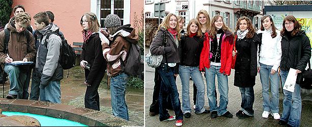 Austauschbesuch aus Thonon Französische Austauschschüler bei der Stadtrallye.(Fotos:privat)(bro) (stve) Mit dem Austauschbesuch der 14- und 15-jährigen Schülerinnen und Schüler des Lycée de la Versoie aus Eberbachs Partnerstadt Thonon kehrte anscheinend auch der Frühling in die Neckarstadt ein. Lag vergangenen Donnerstag beim traditionellen Willkommen durch Bürgermeister Bernhard Martin noch Schnee an der einen oder anderen Ecke, präsentiert sich die Stauferstadt den französischen Gästen nun von ihrer besten Seite.