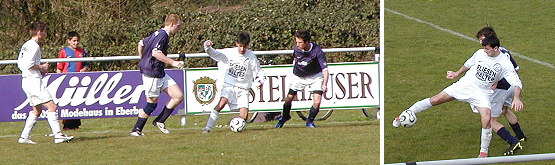 SV Eberbach 1 gegen Vfl Heiligkreuzsteinach 2 (Fotos:Claussen)(jc) (rb) Die erste Mannschaft des SVE kam zunächst gegen die stark defensiv eingestellte Gästemannschaft heute nicht so recht zum Zug. In der 17. Minute war ein Freistoß aus 20 Metern fällig, den Balukcic von halb links getreten, ins rechte Toreck zum 1:0 Führungstreffer verwandelte. So wurden auch die Seiten gewechselt. Danach blieb das gewohnte Bild aus der 1. Halbzeit erhalten. Die Gäste begnügten sich aufs Verteidigen und der SV Eberbach rannte unermüdlich gegen dessen Tor an.