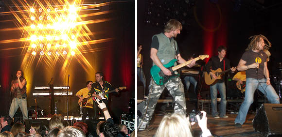 900 Leute beim Osterrock Riesenstimmung machten gestern "Me and the Heat" in der mit 900 Leuten ausverkauften Stadthalle. (Fotos: Baumgartner)(tb) Absolut ausverkauft war gestern die Oster-Rock Party in der Eberbacher Stadthalle, als das Kulturlabor mit "Me and the Heat" eine der im Augenblick wohl angesagtesten Party-Bands präsentierte. Über 900 Musikfans feierten dabei ausgelassen in die Osterfeiertage und erlebten ein Wahnsinnskonzert. Gleich beim ersten Stück der Band sprang der Funke aufs Publikum über und es wurde losgetanzt. Mit einer außerordentlichen Auswahl an Musikstücken, darunter Soul, Funk, Rock, Pop, HipHop, Salsa, Reggae und Calypso, brachte die Band die Stadthalle zum Kochen. Insgesamt 15 Vollblutmusiker, darunter Profimusiker, die zum Teil bei Marius Müller Westernhagen und Herbert Grönemeyer mitmischen, standen gestern auf der Bühne, heizten den Musikfans gehörig ein und brachten eine Riesenparty. Natürlich gab es am Schluß die geforderten Zugaben.