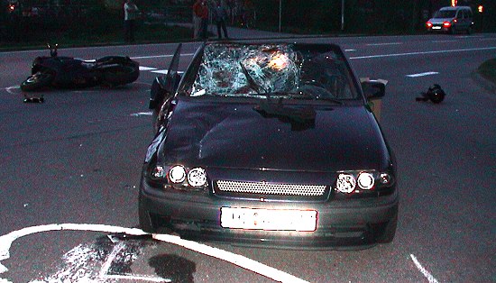 Motorrad prallt gegen Auto (Foto:Richter)(hr) Mit schweren Verletzungen musste heute Abend ein 30-jähriger Motorradfahrer nach einem Unfall in eine chirurgische Klinik in Heidelberg eingeliefert werden.