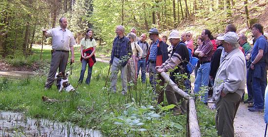 Gute Beteiligung beim Gemarkungsrundgang (Foto:privat)(cr) (mh) Mit über 50 Mitwanderern verzeichnete der diesjährige Gemarkungsrundgang der Gemeinde Sensbachtal am vergangenen Sonntag einen sehr guten Besuch. Sicherlich auch begünstigt durch das schöne Wetter, konnte Bürgermeister Manfred Heiss beim Start um 9 Uhr am Gemeindezentrum diese stattliche Teilnehmerzahl begrüßen. Die Wanderung führte auf einer von Wanderwart Reinhold Holschuh ausgearbeiteten Strecke um den Schnuppenberg herum bis zur Salmshütte. An verschiedenen Punkten gab Revierförster Erich Kuhlmann Erläuterungen zu den Schäden durch Windwurf und Käferbefall.