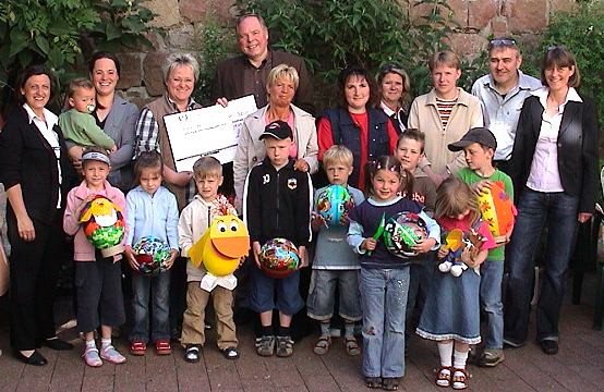 Gestern wurde das Geheimnis gelüftet, welches Ei die meisten Stimmen bekommen hat. Den ersten Platz belegte das Osterei Nr. 46, gestaltet vom Kindergarten St. Elisabeth, den zweiten Platz erreichte das Ei Nr. 25, kreiert vom Kindergarten St. Maria, und den dritten Platz erreichte das Osterei Nr. 41, ebenfalls vom Kindergarten St. Elisabeth. Müller dankte den anwesenden Erzieherinnen und den Kindern für ihre spontane Unterstützung und überreichte im Namen der EWG-Mitglieder einen symbolischen Scheck in Höhe von 500 Euro. Die Erzieherinnen durften sich neben den jeweils 100 Euro für ihren Kindergarten auch über Bälle und Sandschaufeln für die Kitas freuen.