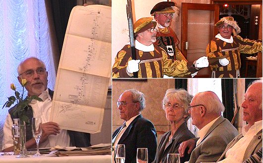 Rückschau nach 30 Jahren Günter Lipski mit einem Plan für den Festumzug. Rechts oben die drei Herolde, darunter v.l. Helmut Joho, Eleonore und Joachim Viebig sowie der damalige Bürgermeister Horst Schlesinger. (Fotos:Richter)