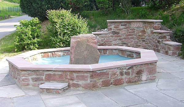 MGV-Frohsinn lädt zur Einweihung ein (Foto: privat)(bro) (hsl) Schmucklos und sanierungsbedürftig war der kleine Springbrunnen im Unterdorf von Brombach. Als Zeuge von der Stelle, wo einst das Pumpenhäuschen der Brombacher Wasserversorgung stand. Um der Überlegung entgegenzuwirken, den Brunnen aus Kostengründen mit einer Betonplatte einzuebnen, erklärte sich der MGV-Frohsinn bereit, den Brunnen neu zu gestalten. Er übernahm die Patenschaft. Nach monatelangen Arbeiten wurde er jetzt fertig gestellt. Das aus Sandstein errichtete Brunnenbecken umrahmt einen Findling, aus dem das Wasser der ehemaligen Triebleitung der früheren Pumpe sprudelt. Jetzt eine optische Bereicherung für das Brombacher Unterdorf. Am Sonntag, 13. Mai um 10.30 Uhr lädt der MGV-Frohsinn alle Brombacher und Brunnenfreunde zur offiziellen Einweihung ein.