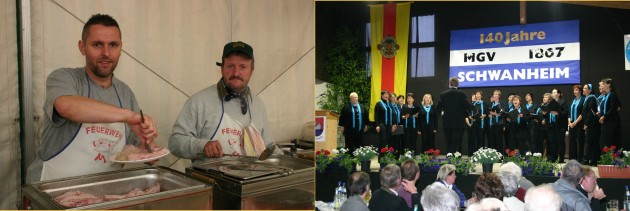 Ausklang der Feierlichkeiten des MGV Schwanheim Heiß her ging es bei der Zubereitung der Schälrippchen. Frisch gestärkt trug auch der Frauenchor des MGV Schwanheim zum Gelingen des Festes bei. (Fotos: Böhm)(ub) Nach dem Besucheransturm zu den Feierlichkeiten anlässlich des 140-jährigen Bestehens des MGV Schwanheim klang dieser gestern mit dem Schälrippchenessen und einem weiteren Freundschaftssingen der Gastvereine aus.