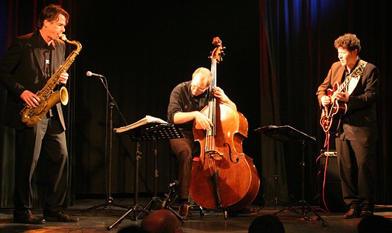 Mit dem Saxofon-Gitarre-Bass-Trio darf man improvisierte Musik auf höchstem Niveau erwarten. Heinz-Dieter Sauerborn ist Saxophonist bei der Bigband des Hessischen Rundfunks. Gitarrist Bernhard Sperrfechter, ein Klangperfektionist, bewegt sich vielseitig, virtuos und stilsicher in vielen Genres, und Kontrabassist Heinz Höhn gehört zu den gefragtesten Bassisten Deutschlands. Die drei gestandenen Musikerpersönlichkeiten loten in Eleganz und Coolness die ganze Palette zeitgenössischer Musik aus und überschreiten mutig die Grenzen festgelegter Stilistiken. Hierbei steht die gleichberechtigte Interaktion aller Instrumente im Vordergrund des musikalischen Konzepts.