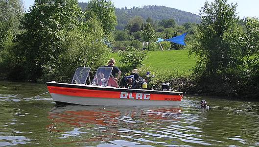 Ausbildungs-Seminar für Einsatztaucher (Foto: privat)(bro) (js) Am vergangenen Samstag fand bei der DLRG-Eberbach ein ganztägiges Ausbildungs-Seminar für in Ausbildung stehende Einsatztaucher der DLRG statt. Aus den drei Bezirken Rhein-Neckar, Mannheim und Kurpfalz waren Einsatztaucher-Anwärter nach Eberbach gekommen. Der Ausbildungstag umfasste zunächst einen theoretischen Teil. Bei der anschließenden praktischen Übung wurde das Gelernte von drei Booten der Eberbacher DLRG aus im Neckar geübt. Abgesichert wurde diese Übung dann auch durch Einsatztaucher sowie Bootsbesatzungen der DLRG Eberbach.
