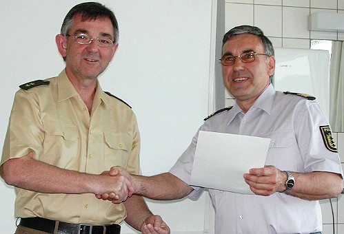 Werner Neuer in den Ruhestand verabschiedet Bernd Bühler (l.) verabschiedet Werner Neuer. (Foto:Polizei)(hr) (pol) Am 30. April endete die Dienstzeit von Polizeihauptkommissar Werner Neuer als stellvertretender Leiter der Wasserschutzpolizeistation Heidelberg nach mehr als 40 Dienstjahren. Er wurde von seinem Chef, Polizeioberrat Bernd Bühler, in einer privaten Feierstunde in den Ruhestand verabschiedet (unser Bild).
