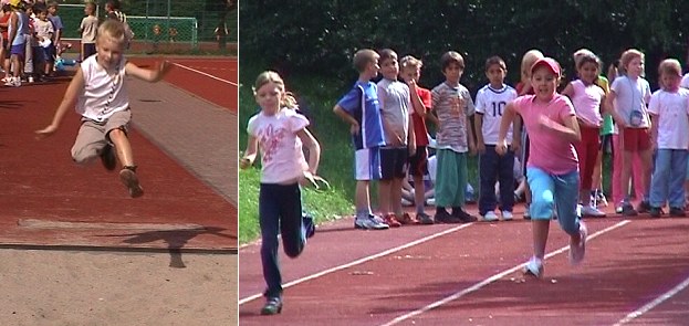 Bei den Disziplinen 50-Meter-Lauf, Ballweitwurf und Weitsprung gaben die etwa 300 Kinder der ersten bis vierten Klassen ihr Bestes. Diese Veranstaltung sei eine freiwillige Aktion der Schule, die aber schon Tradition habe, so Lehrerin Heidrun Moisa.