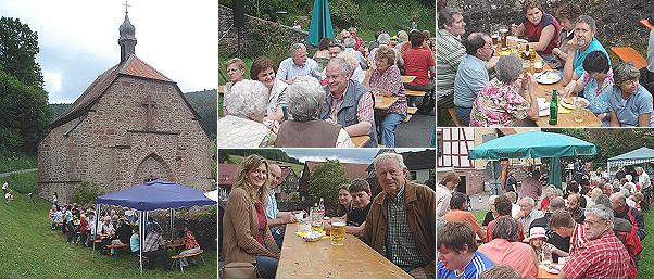 Ein Fest von Gastlichkeit und dörflicher Gemeinschaft (Fotos:Gündling)(ag) Das Dorffest 2007 auf Einladung der Freiwilligen Feuerwehr Schöllenbach und des Gesangsvereins Sängerkranz Schöllenbach unter freiem Himmel zwischen Wolken und Sonnenschein in schöner Atmosphäre bot Kulinarisches und eine Zeit des Miteinanders. Viele Schöllenbacher, darunter auch Bürgermeister Thomas Ihrig mit Ehefrau Ulrike, nahmen den Anlass wahr, um bei gutem Essen zusammenzusitzen und die Gemeinschaft zu genießen. Auch ein paar Gäste aus Friedrichsdorf waren erschienen und so feierte man heute mit Kindern, Familien und allen, die gekommen waren, in den Sommer, der bald beginnt. Ein gelungenes Dorffest hatte man auf die Beine gestellt, ein Fest voller Gastlichkeit.