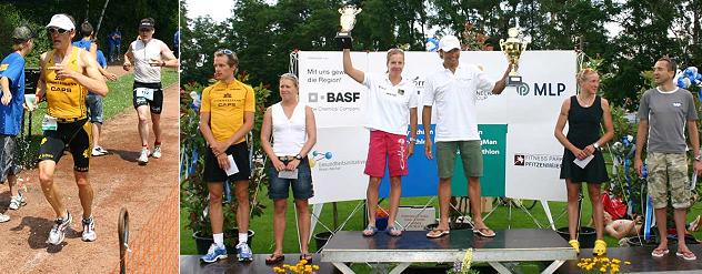 zu Protokoll. In Weisenheim am Berg nutzte Normann Stadler einem leichten Anstieg und setzte sich an die Spitze des Feldes. Ab diesem Zeitpunkt beschränkte sich Timo Bracht mit Blick auf die Gesamtwertung des Rhein-Neckar Triathlon-Cup 2007 darauf, seinen zweiten Platz abzusichern. Nach 3:48:14 Stunden wurde auch er im Ziel bejubelt und übernahm mit seinem zweiten Platz in Maxdorf die Gesamtführung im Rhein-Neckar Triathlon-Cup. Platz drei belegte Frank Horlacher (SV Nikar Heidelberg) der den viertplatzierten Martin Wagner (VfR Simmern) auf den letzten Metern noch einholen konnte.