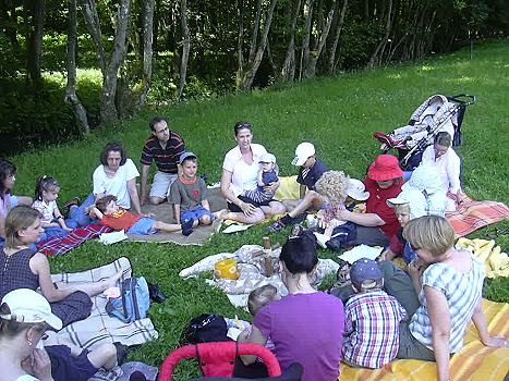 Eine Schatzkiste für den Täufling (Foto: privat)(bro) (jw) So wie jedes Jahr im Juni fand der Gottesdienst der Kolpingfamilien im Ittertal statt. Seit letztem Jahr beteiligt sich an dieser Feier auch die Kinderkirchengruppe von St. Johannes Nepomuk. Die Kleinen und ihre Eltern suchten sich ein schattiges Plätzchen an der Itter, wo sie ihre Decken ausbreiteten. In die Mitte stellte man eine Kerze und ein Kreuz als Symbol, dass Gott anwesend ist. Dieses Mal gab es aber noch etwas ganz Besonderes. Im "großen Gottesdienst" fand eine Taufe statt. Dieses Thema wurde in den Kinderwortgottesdienst mit übernommen. Puppe Paula erzählte die Geschichte von "Jesus segnet die Kinder". Die Kleinen lauschten gespannt der Geschichte und überlegten dann, was sie dem Täufling an Segenswünschen mitgeben könnten. Das Kigoteam hatte etwas vorbereitet, um es den Kleinen nicht zu schwer zu machen. Dann wurden verschiedene Wünsche aufgemalt. Das Besondere war, dass diese Segenswünsche in eine silberne glitzernde Schatzkiste kamen. Diese Kiste wurde dann von den Kindern im "großen Gottesdienst" an den Täufling und seine Familie überreicht.