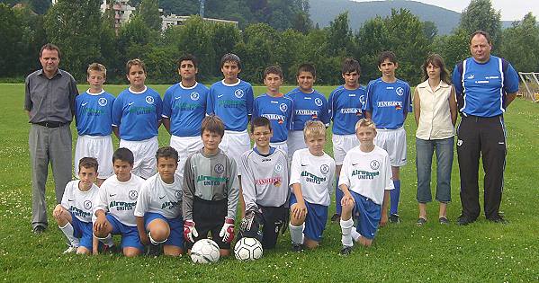 Drei Trikotsätze für die D-Jugend Die aktuelle D2-Mannschaft mit den Spendern Ute Krug und Christopher Hepp (vordere Reihe, zweiter v. l.), flankiert vom VfB-Vorsitzenden Joachim Scheible und Jugendleiter Bernd Lemberger.(Foto: privat)(bro) (bl) Gleich über drei Trikotsätze durfte sich die D-Jugend des VfB Eberbach freuen. Zwei Sätze wurden von Ute Krug gespendet, die diese bei einem Preisausschreiben der Firma Wrigleys gewann. Ein weiterer Satz wurde vom D-Jugendspieler Christopher Hepp gespendet, den er ebenfalls bei einem Gewinnspiel anlässlich der Weltmeisterschaft von der Firma Gold-Ei gewann.