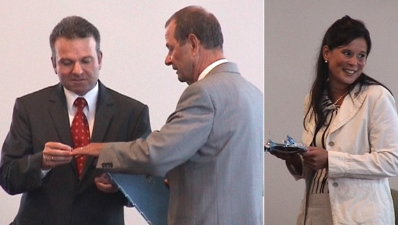 Abschied nach 32 Jahren im Gemeinderat Bürgermeister Bernhard Martin verleiht den goldenen Ehrenring an Bruno Schmitt. Rechts die neue Stadträtin Beate Lemberger. (Fotos:Richter)(hr) Seit 1975 gehörte Bruno Schmitt ohne Unterbrechung dem Eberbacher Gemeinderat an. Heute räumte der Chef der SPD-Fraktion auf eigenen Wunsch seinen Platz im Ratssaal. Für sein außergewöhnlich langes Engagement im politischen Ehrenamt wurde ihm der Ehrenring der Stadt Eberbach in Gold verliehen.
