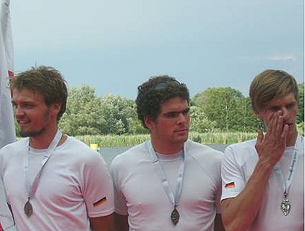 Verdientes WM-Ticket zur U23-WM in Schottland Simon Schiml (Mitte) hat sein hochgestecktes Ziel erreicht: die U23-Weltmeisterschaft in Strathclyde/Schottland. (Foto: privat)(bro) (ewa) Gleich zweimal triumphierte Simon Schiml bei den deutschen U23-Meisterschaften in Brandenburg. Auf dem Beetzsee ging das Eberbacher Ruderass im Vierer und im Achter an den Start. In neuer Besetzung erkämpfte er sich zuerst im Vierer mit Steuermann im Team mit Ruderern aus Frankfurt, Lübeck und Limburg den Titel des Vizemeisters. Und auch im Achter, der Königsklasse, lieferte sich die Mannschaft mit Schiml ein bis zum Schluss spannendes Rennen und errang auch hier die Silbermedaille. Damit hat er mit Bravour sein hochgestecktes Ziel erreicht, die Nominierung für die U23-Weltmeisterschaft, die in diesem Jahr in Strathclyde/Schottland stattfinden wird.