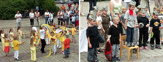 Mit der sehr gut vorgetragenen Geschichte spielten sich die kleinen Mädchen und Jungs dann singend in die Herzen der vielen Besucher, die hoffentlich für den finanziellen Erfolg des gesamten Festes sorgten. Verkauft und versteigert wurden dann auch viele Stücke aus dem Bastelalltag des Kindergartens "Villa Regenbogen".