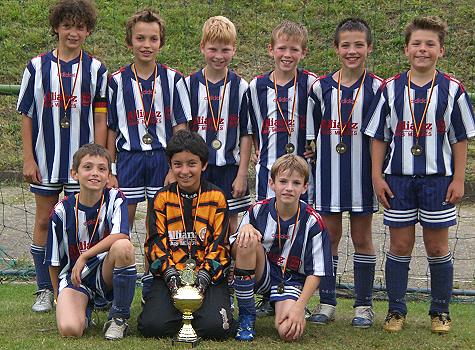 Ein erfolgreiches Wochenende in Neckarsteinach Die glücklichen Sieger: Samuel Bund, Jonas Flechsenhar, Marvin Sauer, Maximilian Reinig, Sascha Christian, Christian Dietz (stehend v. li.), Tobias Lemberger, Yousef Ahamd, Mario Cancar (kniend v. li.). (Foto: privat)(bro) (bl) Die E1 des VfB Eberbach trat am vergangenen Wochenende beim Einladungsturnier der SpVgg Neckarsteinach an. In der Vorrunde traf man zunächst auf den FC Phönix Neckarzimmern. Der VfB hatte den Gegner jederzeit im Griff und gewann durch Tore von Marvin Sauer (2), Mario Cancar und Samuel Bund mit 4:0. Die nächste Begegnung gegen die TSG Hoffenheim III entschied die Eberbacher mit 3:0 für sich. Torschützen waren Cancar (2) und Maximilian Reinig. Die beiden letzten Spiele gegen den SV Neunkirchen und die JSG Gorxheimertal wurden jeweils mit 2:0 gewonnen, wobei für den VfB, bei einem Eigentor, je einmal Mario Cancar, Maxi Reinig und Marvin Sauer trafen.