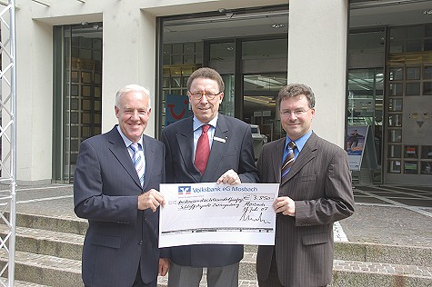 Großzügige Spende in Höhe von 3.850 Euro für ein kulturelles Juwel Peter Kirchesch (2. Vorsitzender der Schlossfestspiele Zwingenberg am Neckar e. V.), Volksbankdirektor Klaus Saffenreuther und Landrat Dr. Achim Brötel (v. l.) (Foto:Schlossfestspiele)(ag) (sch) Mit einer Kulturförderung in Höhe von 3.850 Euro unterstützt die Volksbank eG Mosbach die Jubiläumssaison der Schlossfestspiele Zwingenberg. Der Vorstandsvorsitzende Direktor Klaus Saffenreuther freute sich, diesen Betrag gemäß dem genossenschaftlichen Förderauftrag , nach dem die Volksbank sich auf vielfältige Art und Weise für die kulturellen Belange in der Region engagiere, einem „außergewöhnlichen kulturellen Juwel“ im Neckar-Odenwald zur Verfügung stellen zu können.